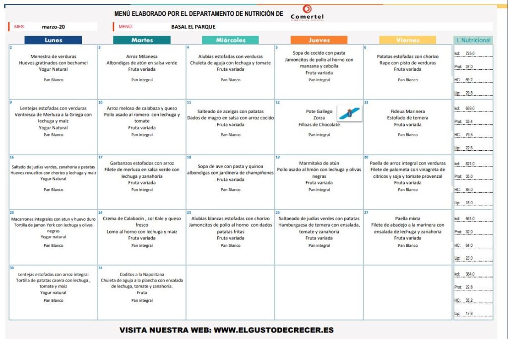 02/03/2020 Colegio Público "El Parque" Huesca Menú de marzo 2020 Comparte:Tweet Haz clic para enviar un enlace por correo electrónico a un amigo (Se abre en una ventana nueva) Correo electrónico Haz clic para imprimir (Se abre en una ventana nueva) Imprimir Me gusta Cargando...
