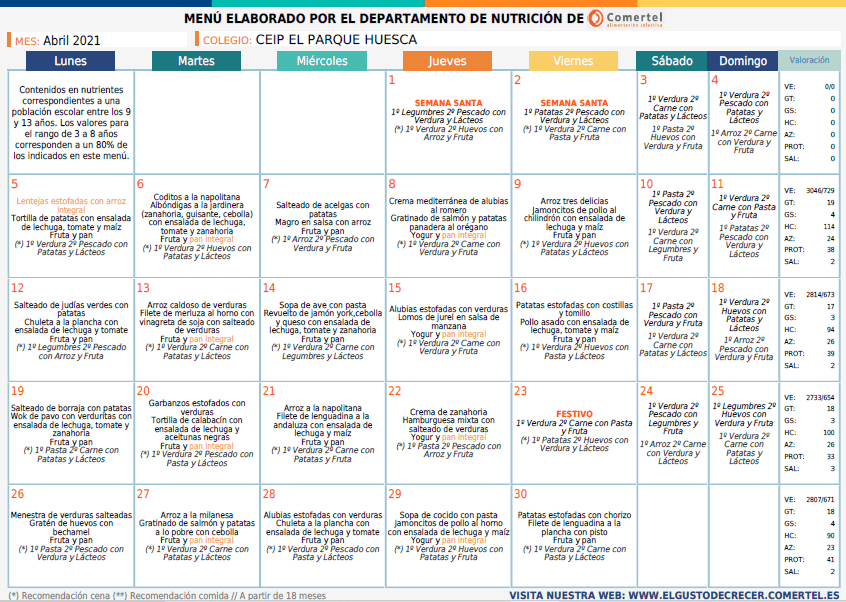 31/03/202124/03/2021 Colegio Público "El Parque" Huesca Menú de abril Menú abrilDescarga Comparte:Tweet Haz clic para enviar un enlace por correo electrónico a un amigo (Se abre en una ventana nueva) Correo electrónico Haz clic para imprimir (Se abre en una ventana nueva) Imprimir Me gusta Cargando...