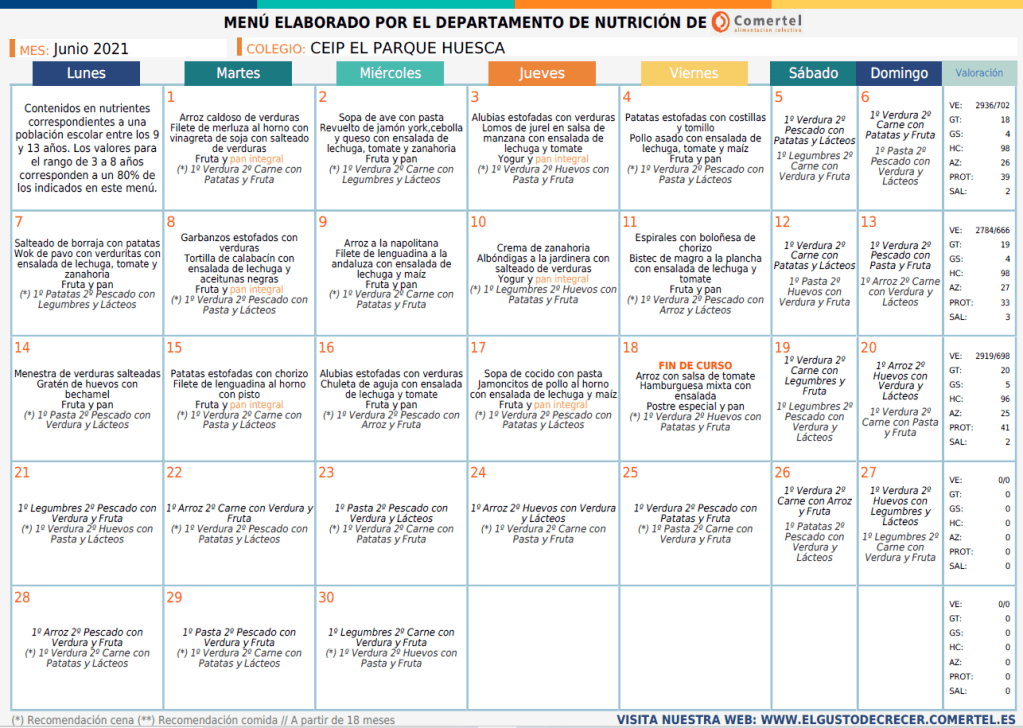 31/05/2021 Colegio Público "El Parque" Huesca Menú junio Menú junio PDFDescarga Comparte:Tweet Haz clic para enviar un enlace por correo electrónico a un amigo (Se abre en una ventana nueva) Correo electrónico Haz clic para imprimir (Se abre en una ventana nueva) Imprimir Me gusta Cargando...
