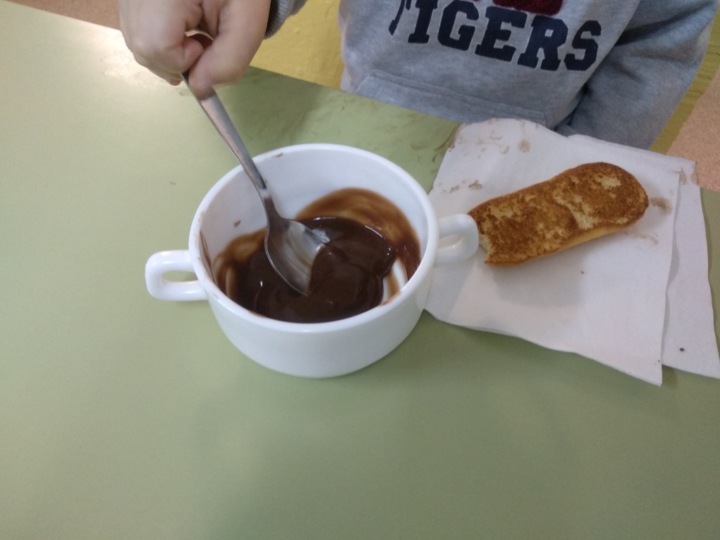 Finalmente teníamos también una cuenta atrás navideña, la cual íbamos tachando día a día. Y como último día hemos desayunado chocolate caliente con bizcochos , para tener un final de chuparse los dedos. Todo a ritmo de villancicos de navidad con la voz de Ella Fitzgerald.
