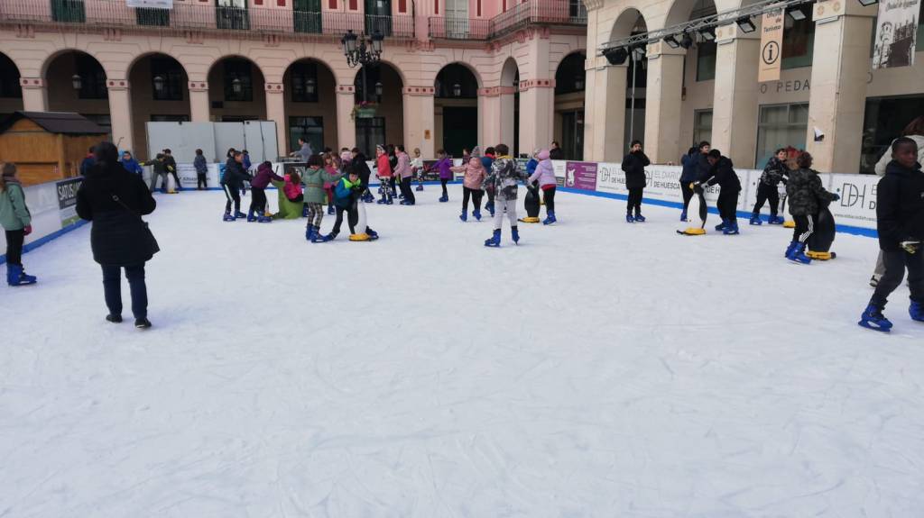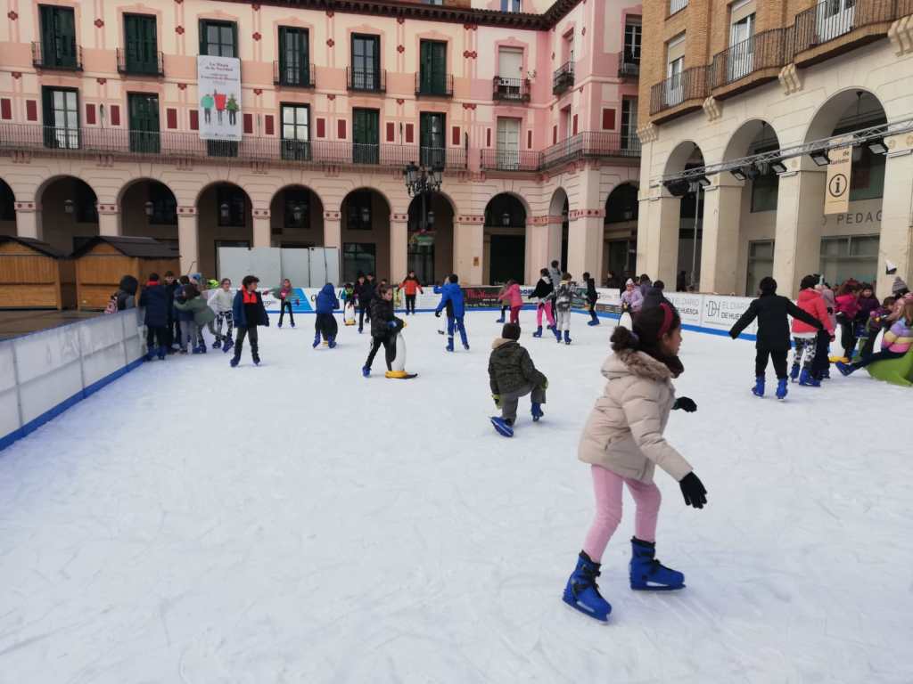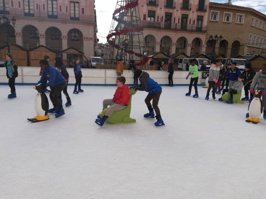 Entre el viernes 16 y el lunes 19 de diciembre, todo el alumnado de Educación Primaria ha ido a disfrutar de la pista de hielo situada en la plaza López Allué.