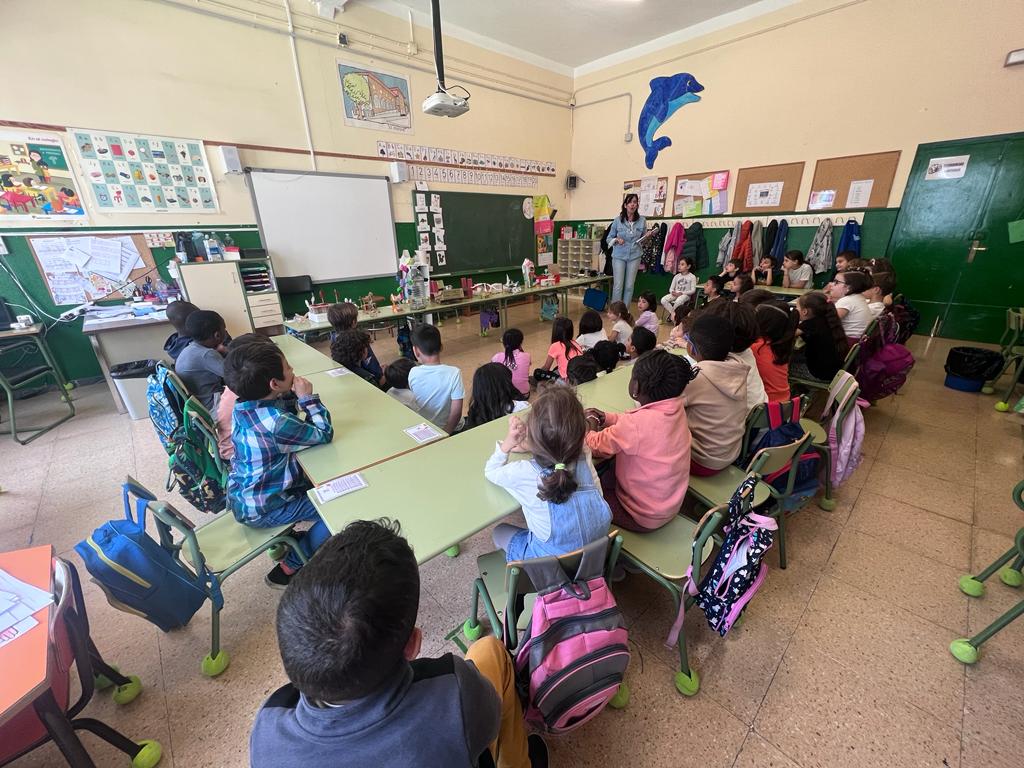 Han querido compartir su experiencia con el alumnado de primero, explicándoles como habían construido sus máquinas con materiales reciclados.