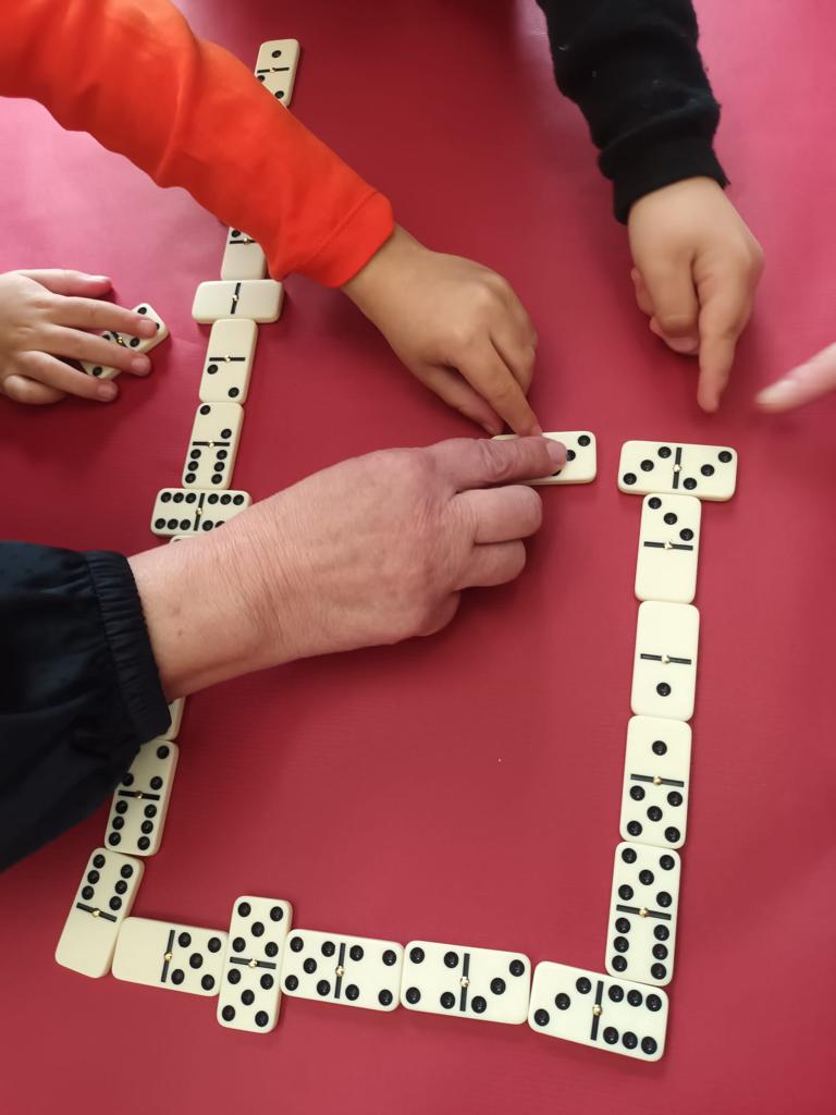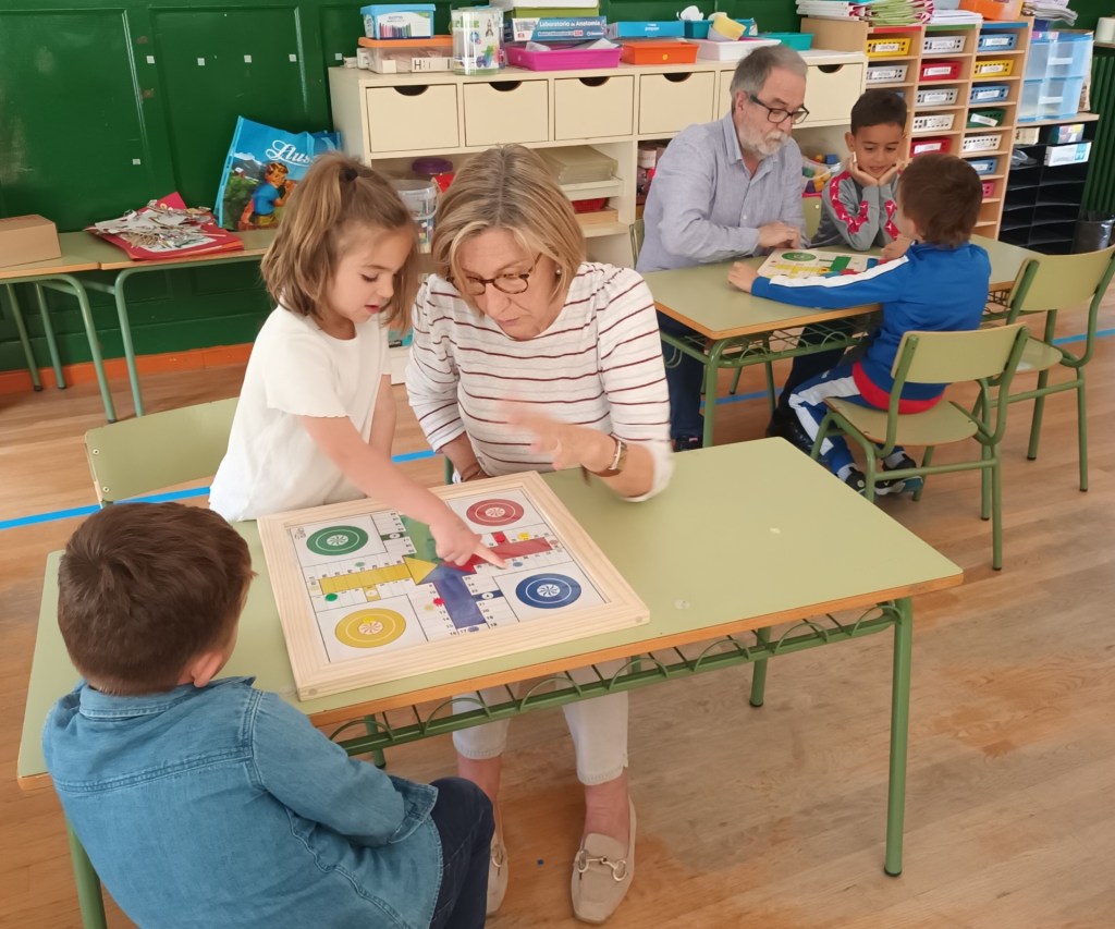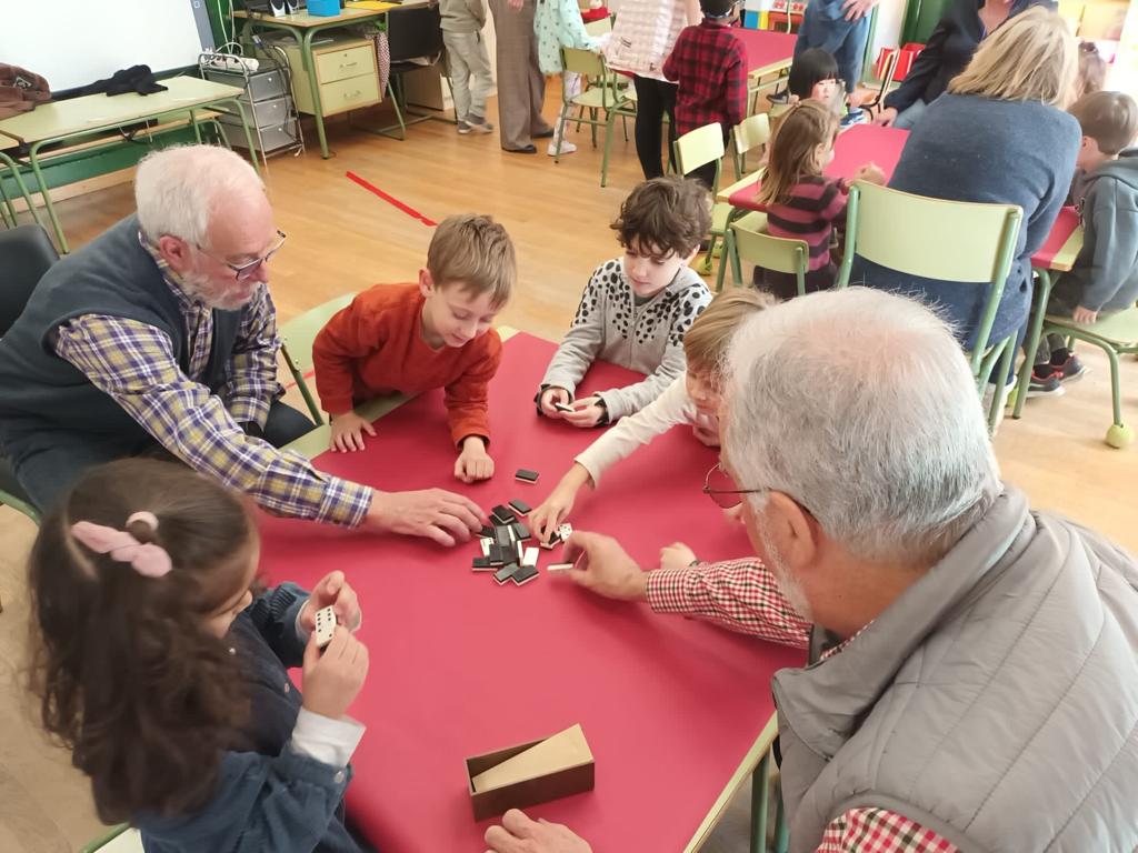 Durante este curso y una vez al mes, el alumnado de 2º de Educación Infantil ha contado con la presencia de unos profes muy especiales; sus abuelos, que han venido a clase a enseñarnos a jugar al dominó, a las cartas, a la oca o el parchís.