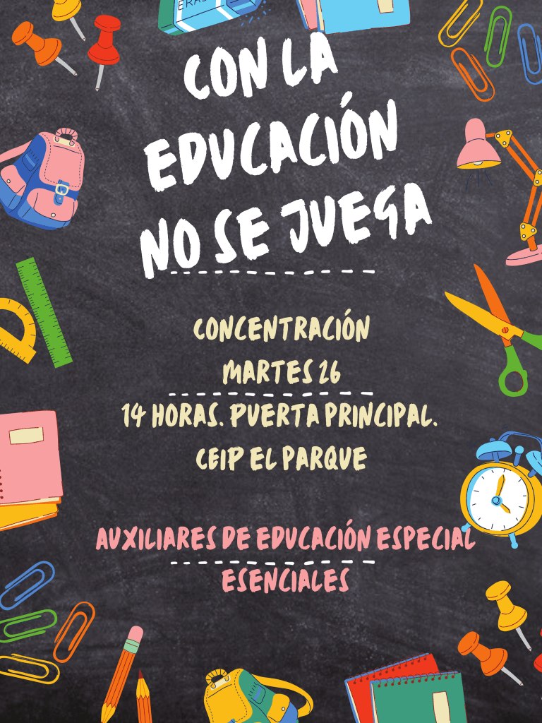 Desde el CEIP El Parque, nos sumamos a la necesidad de contratar todos los auxiliares de Educación Especial que se han solicitado desde los distintos centros educativos, ya que su labor es imprescindible.