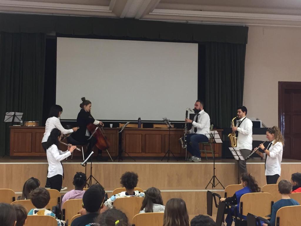 Comenzamos la semana disfrutando de pequeñas muestras de los instrumentos que ofertamos en el cole, las cuales han sido realizadas por las niñas y niños de 4º y 5º de primaria. Ha sido bonito ver lo que han aprendido y lo que disfrutan con la música.