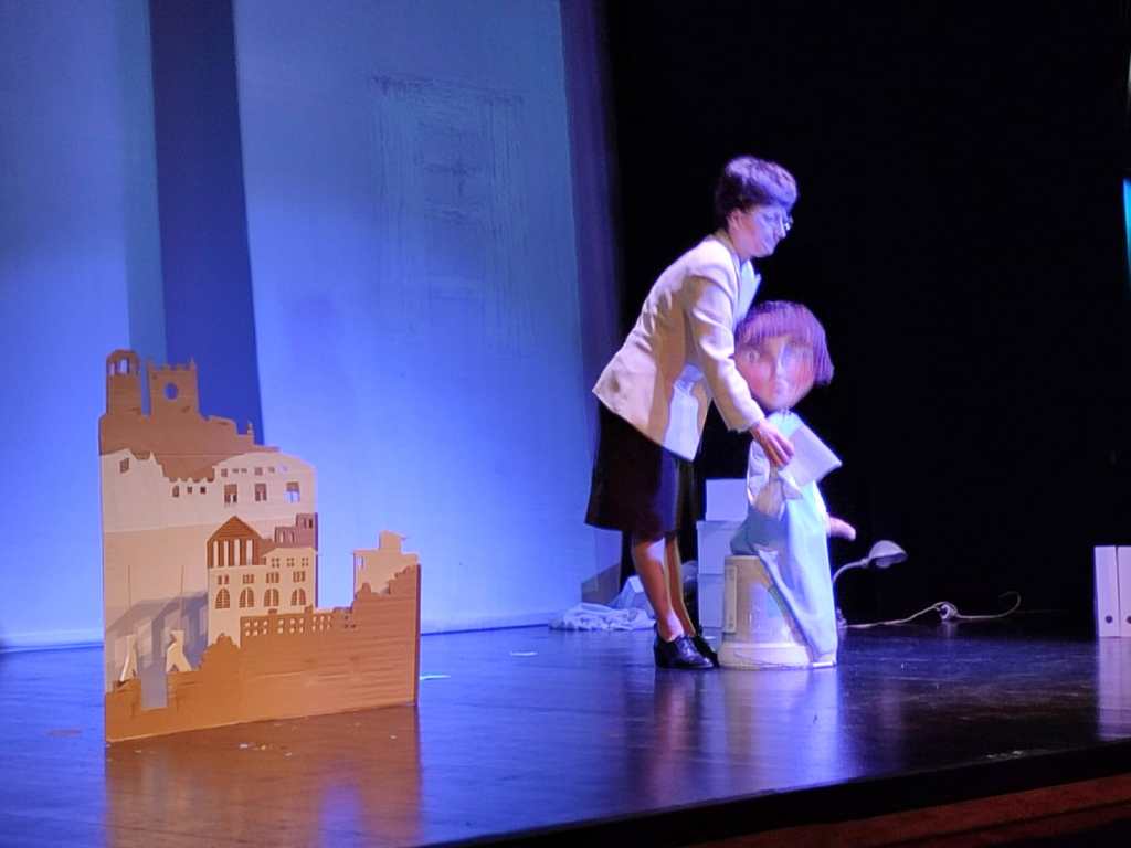 El alumnado de segundo ciclo de primaria asistió ayer al Centro Cultural Manuel Benito Moliner para visionar la obra teatral «La niña azul» referente a la vida de Katia Acín. Quedaron asombrados por la expresión teatral y pictórica de la escenografía y puesta en escena.