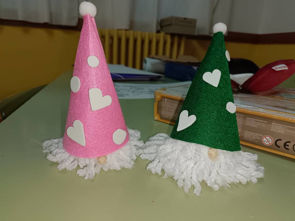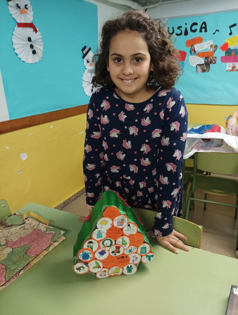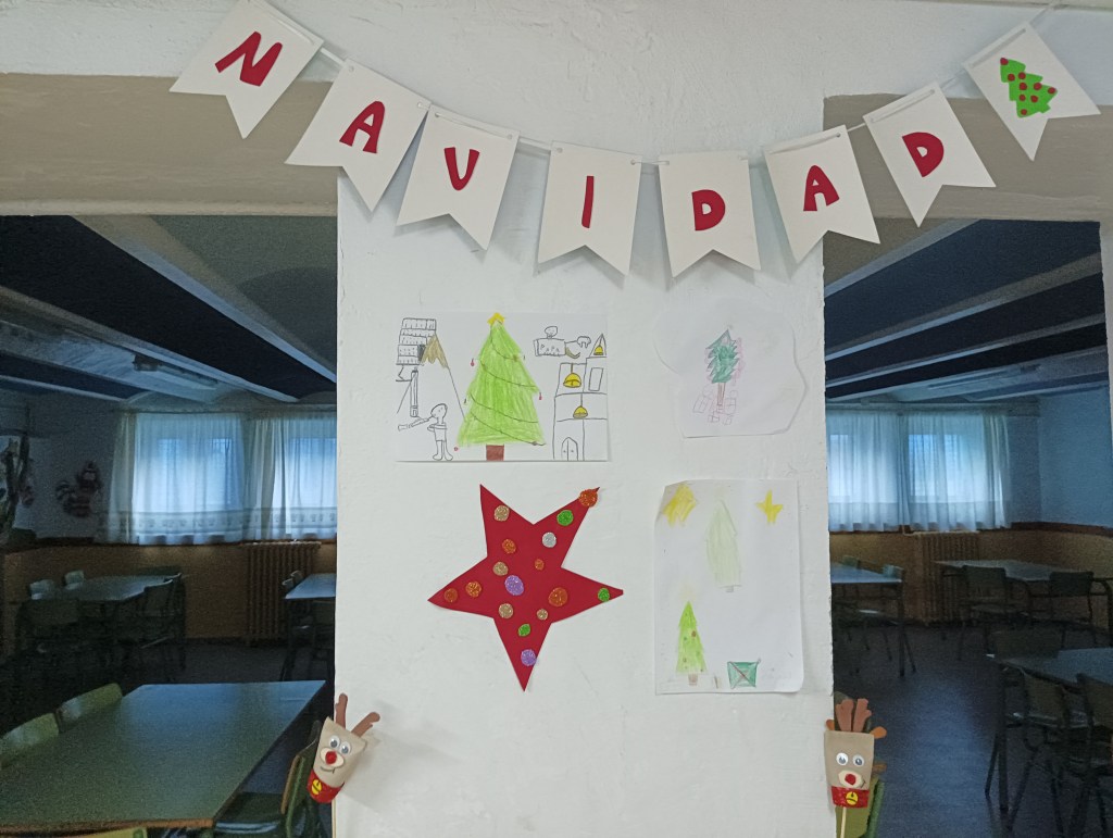 Para navidad hemos hecho una guirnalda de letras y hemos decorado el comedor con más letras y adornos navideños. Además, los niños y niñas se han llevado a casa unos gnomos elaborados con pompones y fieltro.