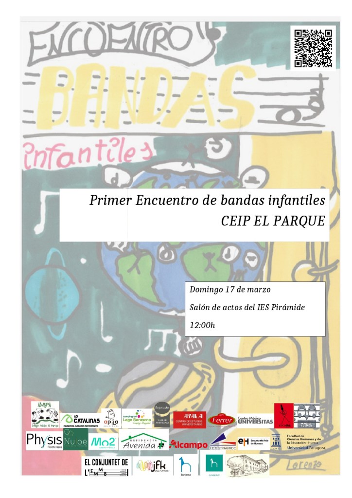 Nos complace informaros que el próximo día 17 de marzo a las 12 horas en el IES Pirámide de Huesca tendrá lugar un concierto en el que se darán cita el alumnado de instrumento de nuestro cole, los niños y niñas del Conjuntet de la Escola Municipal de Benissanet y niños y niñas del proyecto Jazz for kids.