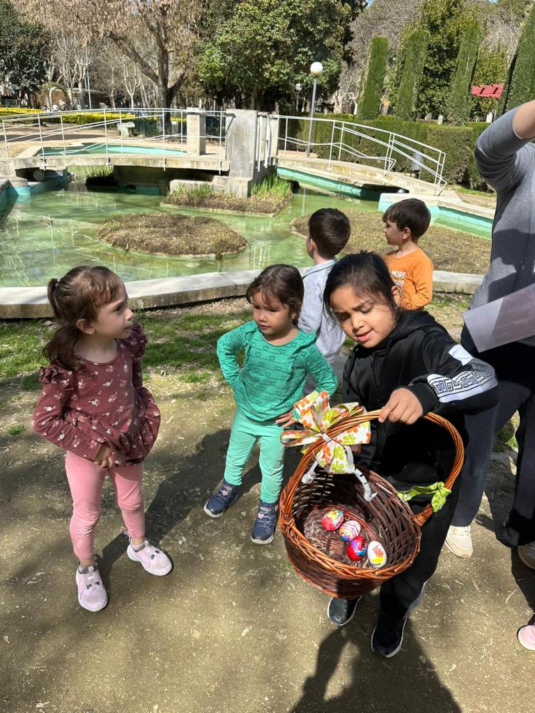 El alumnado de Educación Infantil, dentro del área de Inglés, realizó el pasado viernes la búsqueda de Huevos de Pascua (Easter egg hunt) en el Parque Miguel Servet. Previamente a esta actividad, habían trabajado el vocabulario y decorado los huevos con distintas técnicas.