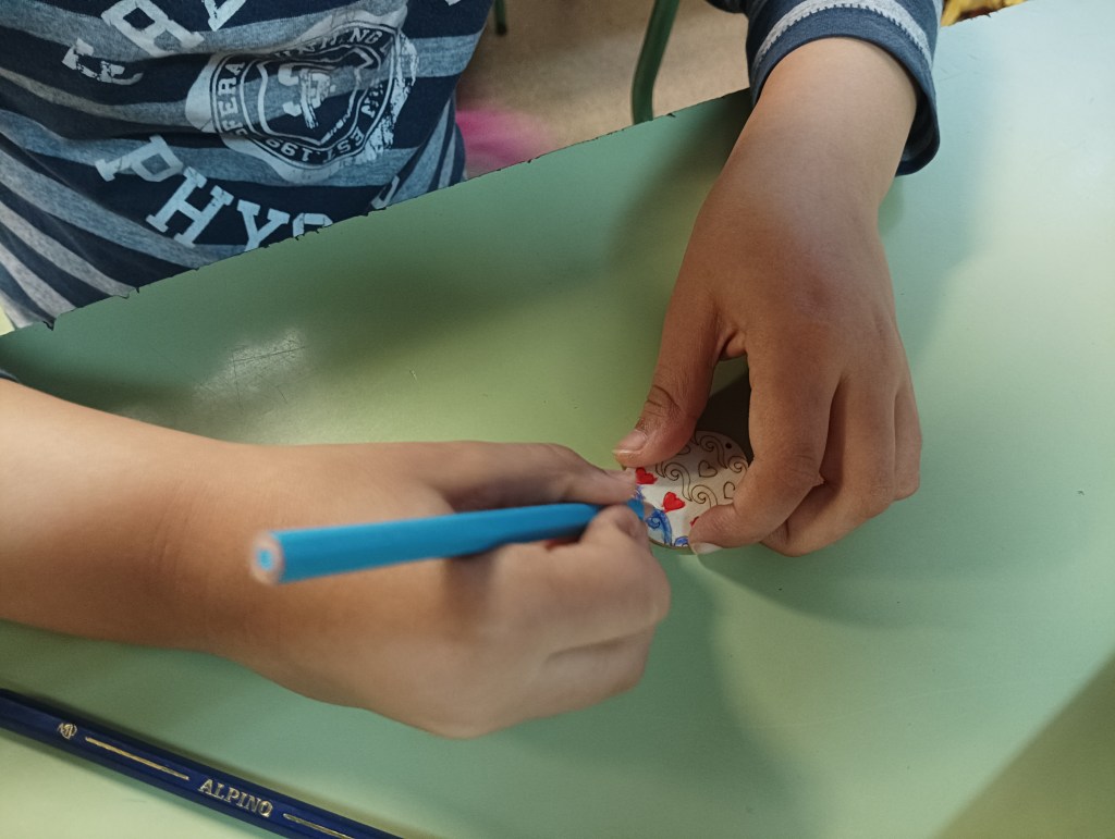 También decoramos unos huevos que utilizamos para llavero o colgante y todo esto a ritmo de la música de Bob Marley.