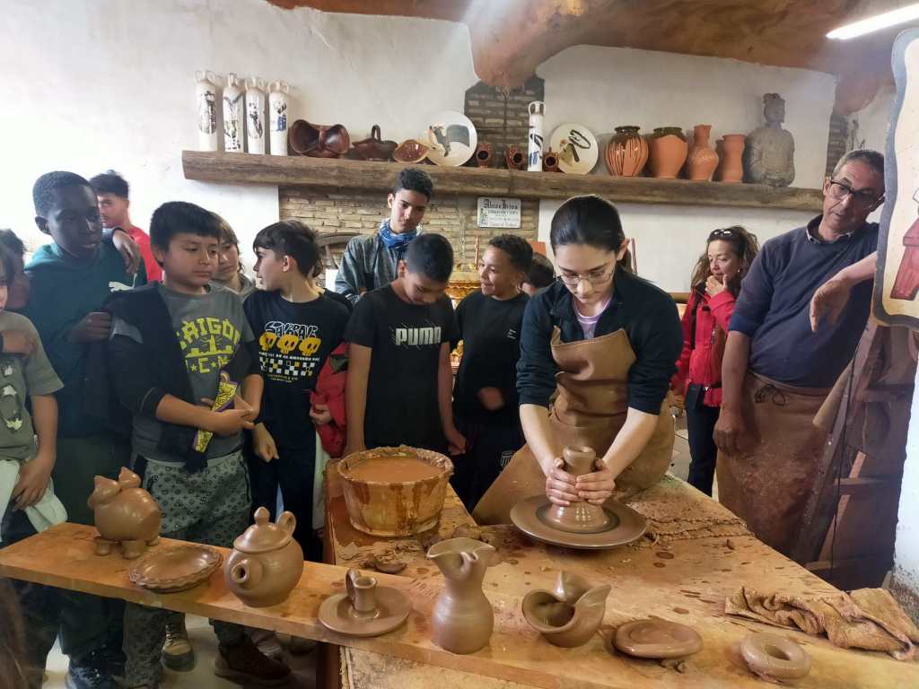 A continuación, fueron al taller artesano de alfarería de Raimundo Abió en Bandaliés, donde les explicó cómo crea diferentes objetos y cómo trabajar la arcilla.
