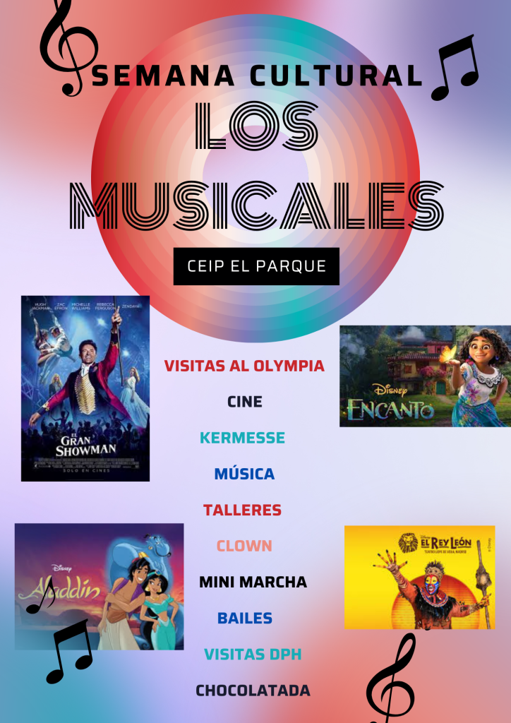 Iniciamos nuestra semana cultural sobre los musicales. Ya hemos realizado alguna visita y disfrutado de cuentacuentos. También jugaremos y bailaremos con una estupenda música de fondo.