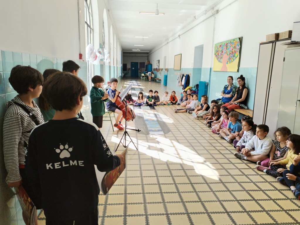 El alumnado de infantil y primer ciclo, ha podido escuchar los timbres de los 5 instrumentos que tenemos la suerte de poder estudiar en nuestro cole y de los aprendizajes que estos músicos han hecho.