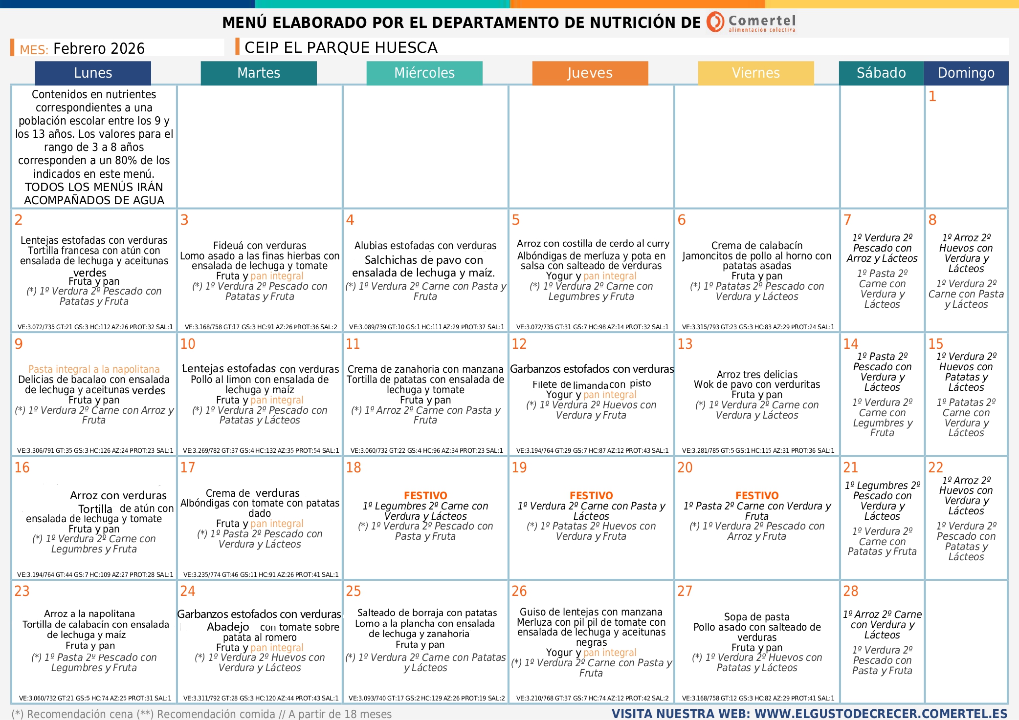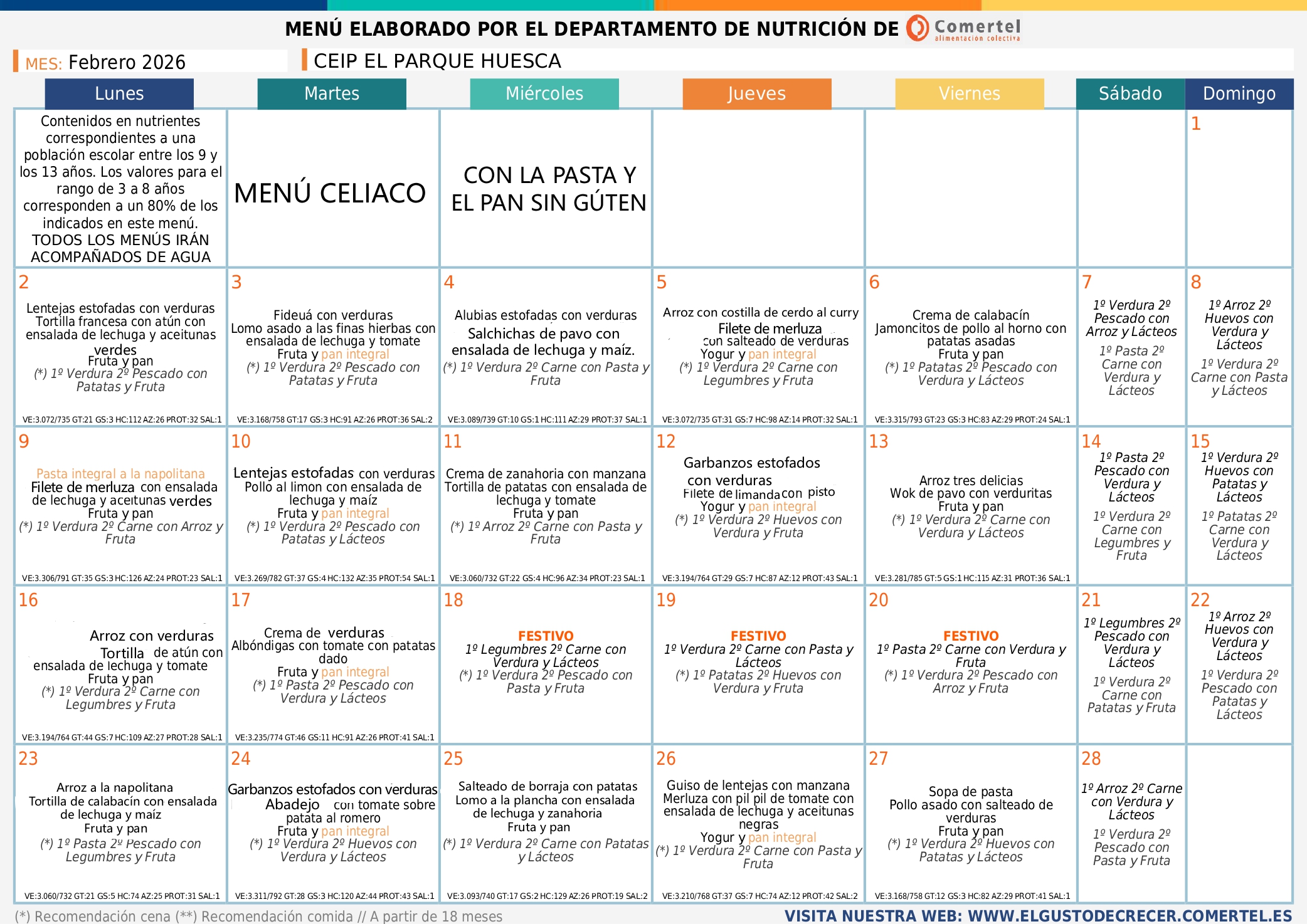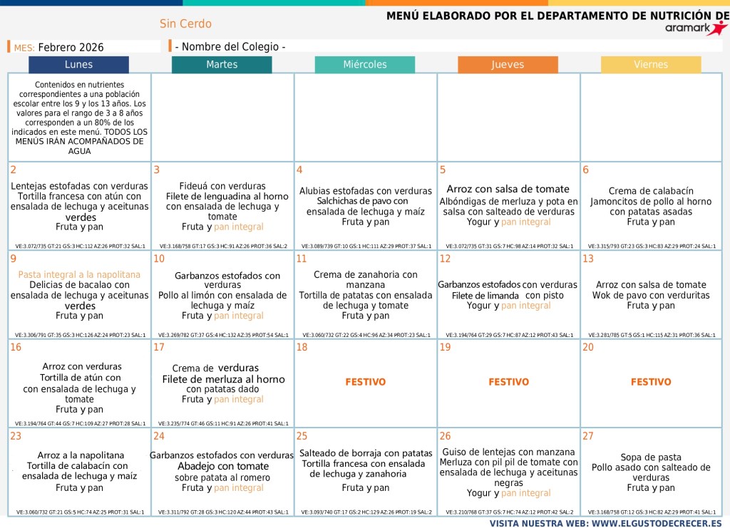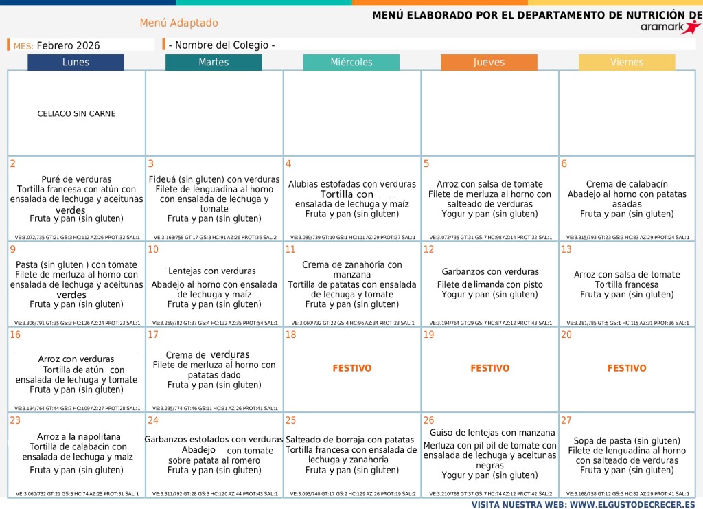 31/01/202631/01/2026 Colegio Público "El Parque" Huesca MENÚ FEBRERO BASAL FEBRERO_page-0001Descarga MENÚ SIN GLUTEN_page-0001Descarga CELIACO SIN CARNE_page-0001Descarga SIN CERDO_page-0001Descarga NO CARNE_page-0001Descarga Comparte:Tweet Enviar un enlace a un amigo por correo electrónico (Se abre en una ventana nueva) Correo electrónico Imprimir (Se abre en una ventana nueva) Imprimir Me gusta Cargando...
